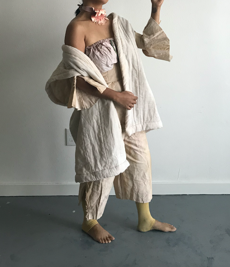 Within the project space is the showroom for interdisciplinary artist/natural dyer Cat Lauigan’s wearable art pieces. All one of a kind wearables, costumes and textile works mostly made from recycled clothing / fabrics and dyed with natural pigments.